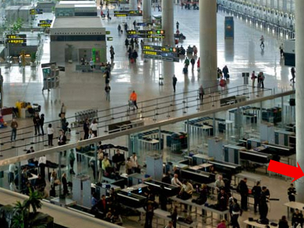 Min kone og jeg ankommer til lufthavnen i Málaga tirsdag den 9. juli klokken 18:15 og går direkte til security.