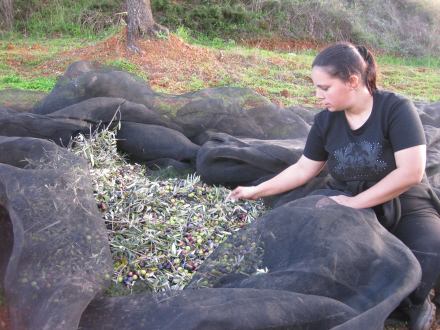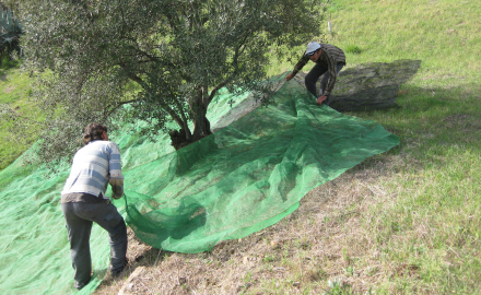 Når træet er høstet færdigt, og de sidste oliven er banket ned, bliver nettet foldet sammen, og frugterne lagt i kasser eller spande. Herefter må der helst ikke gå mere end tre dage, før frugterne presses.