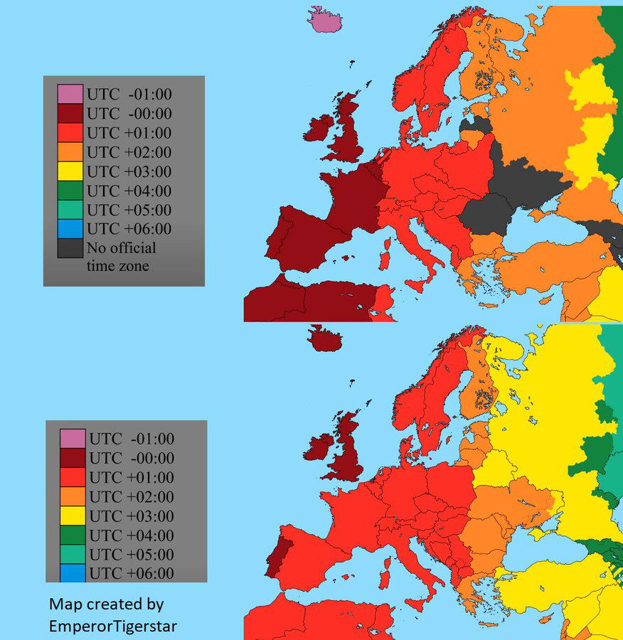 I 2019 luftede den spanske regering muligheden for, at landet burde ændre tidszone og igen anvende den samme som Portugal og Storbritannien, hvilket jo giver noget mere mening rent geografisk. Det ville så blive UTC+1 om sommeren og UTC+0 om vinteren.