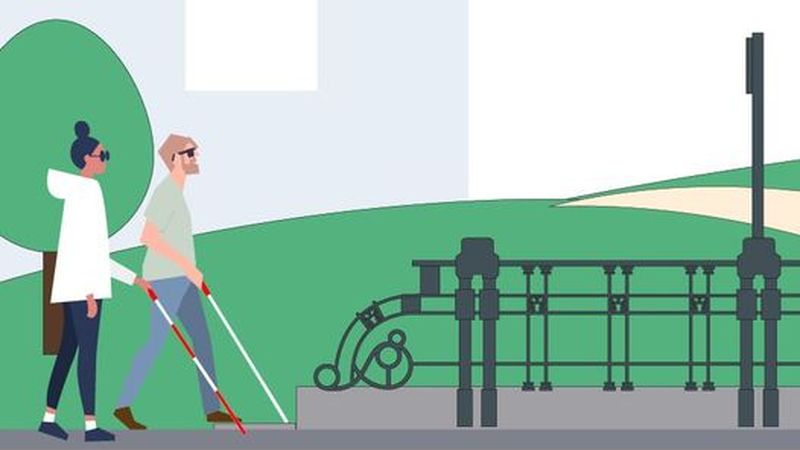 Så når vi ser en person med en stok med disse farver, kan vi identificere, at der er tale om en person med døvblindhed, og vi kan hjælpe vedkommende alt efter omstændighederne,