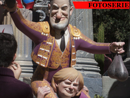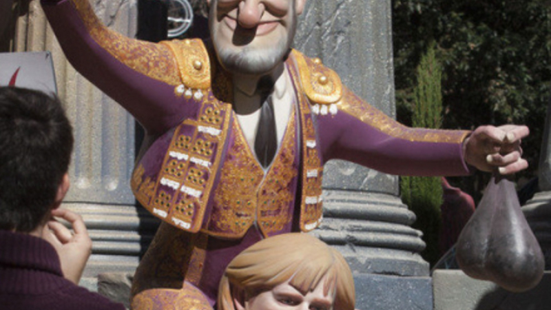 Den spanske premierminister, Mariano Rajoy, er i år blevet karikeret sammen med den tyske kansler Angela Merkel i en situation, som skal illustrerer det nuværende forhold mellem de to EU-ledere og deres lande.