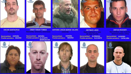 Af de ni mænd er de fire udlændinge. Det er den 47-årige tyske statsborger Dietmar Linke, der menes at opholde sig i Alicante-området. Han er efterlyst af de tyske myndigheder for at have stjålet fra pengeskabe og for at have forårsaget en eksplosion.