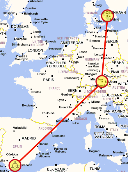 Fra Málaga var vi fløjet over Barcelona, Marseille, Genova og havde nu kurs mod Innsbruck, hvorefter indflyvningen til München skulle starte.