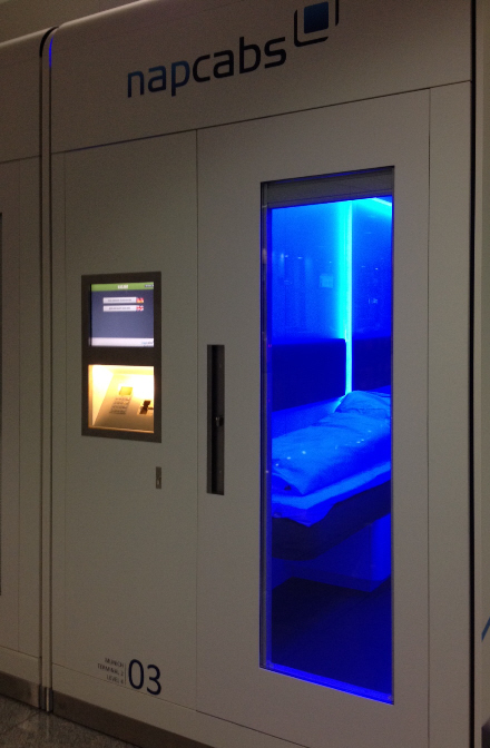 Jeg nåede dog at bemærke 'napcaps', hvor man får 15 euro i timen kan nappe en lur. Mindstebetaling er for to timer, men så inkluderer det også koldt vand og strøm til den bærbare.