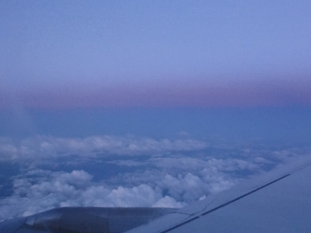 Vi begyndte at gå ned gennem skydækket, og kaptajnen fik ret. Under skydækket lå landskabet i sorte og mørkegrønne farver, der mindede mig om camouflage, og de samtidige lyn på himlen fik mig til at føle, jeg sad i et allieret bombefly ved afslutningen af Anden Verdenskrig. Men jeg var jo også på vej til min mors fødselsdag den 4. maj..