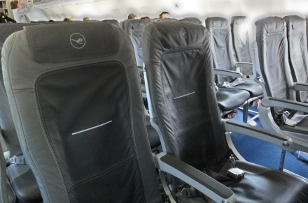 Det første jeg bemærkede i flyet var sæderne. Læderbetræk, formen og de meget tynde sæderygge. Det må give god benplads, tænkte jeg, og det var så sandt, som tænkt.
