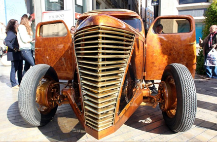 Det var dels 'El Visionario', en gammel Ford i brune metal-farver, som til daglig er udstillet i museets 'Tuning'-afdeling, og som til forveksling minder om 1800-tallets dampmaskiner eller et gensyn med H. G. Wells gamle science-fiktion. Bagfra kan den endda til forveksling ligne en kæmpestor kalkun.