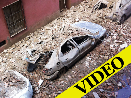 I Málaga blev fire biler smadret af nedfaldende mursten fra en gammel bygning.
