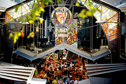 Den modernistiske bue på Boqueria-markedet er for nyligt blevet restaureret og står nu smukkere end nogensinde.