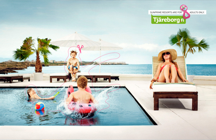 Annonce for Sunprime Resorts der viser at her, klipper man bare børnene ud af billedet