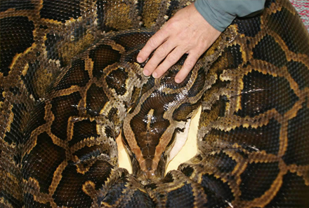 Der var derfor ikke andet at gøre, end at tage Tundra op på skuldrene og videoer og billeder af den gigantiske pytonslange er hurtigt gået verden over.