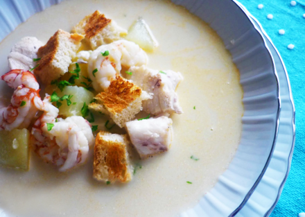 Gazpachuelo er - modsat sin kolde navnesøster - en varm andalusisk suppe, som er tilsat eddike el. citron. Eddiken i denne varme suppe er forbindelsen til Gazpacho. Den er overraskende god og ret let at lave. Idéen er at få en egentlig lille portion fisk til at strække til flere personer. Det bliver bedst med fiskefond, men den er stadig også rigtig god lavet på vand.
