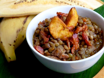 Sæt kikærterne i blød i vand i ca. et døgn. Kog derefter kikærterne i nyt hold vand sammen med laurbærblade, linser, gulerødder og kartofler (i små tern) i en gryde ved stærk varme i ca. 15 minutter, og derefter ved jævn varme.