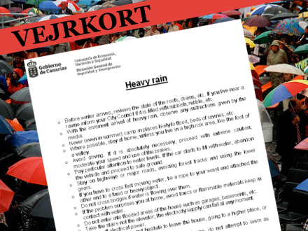 På De Kanariske Øer er der varsel om kraftig nedbør på øerne El Hierro, Gran Canaria, La Gomera, La Palma og Tenerife, hvor der kan falde op til 60 millimeter i løbet af 12 timer.