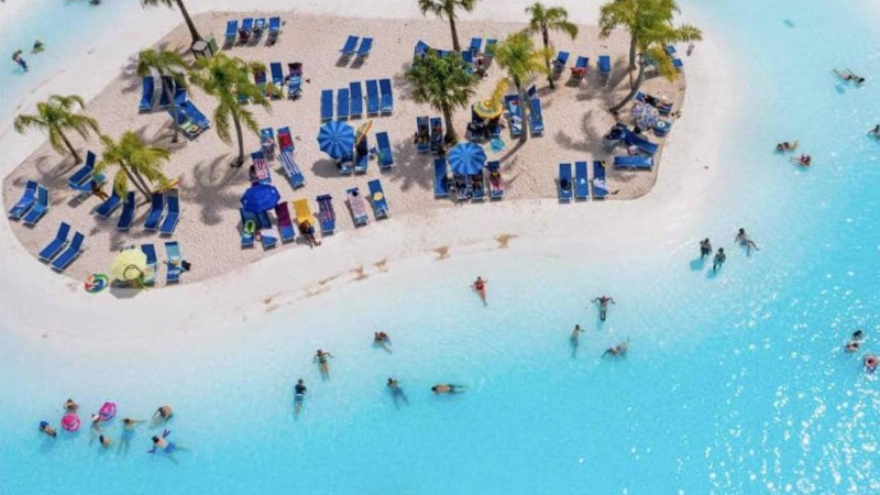 Det over 16.000 kvadratmeter store område Santa Rosalía Lake and Life Resort ligger i Torre Pacheco og åbnede for knap to år siden. Søen har to palmeomkransede øer og hvide sandstrande næsten hele vejen rundt.