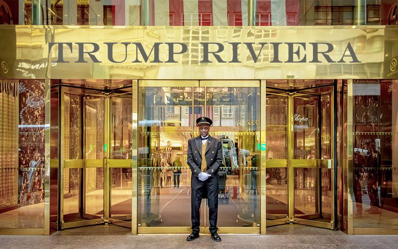 - Jeg vil gerne lige fortælle dig, at ‘Rivieraen’ jo er min nevø Jared Kushners idé og nok meget tvivlsom. Men er verdenspressens og verdensledernes reaktion på min sidebemærkning ikke utrolig? Nå, den har da i det mindste fået nogle til at tænke ud af boksen med alternative fredsløsninger i Mellemøsten.