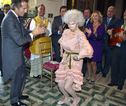 Kært barn har mange navne. Hertuginden Cayetana har endnu flere. Hendes fulde navn er María del Rosario Cayetana Paloma Alfonsa Victoria Eugenia Fernanda Teresa Francisca de Paula Lourdes Antonia Josefa Fausta Rita Castor Dorotea Santa Esperanza Fitz-James Stuart Silva Falcó y Gurtubay.