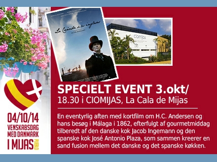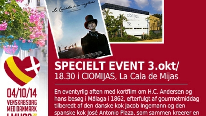 Festligt arrangement i Cio Mijas, La Cala: Klokken 18:30 vises kortfilmen ”La Cañada de los Ingleses” - en ny kortfilm om H.C. Andersen, der havde premiere på filmfestivalen i Málaga i år.