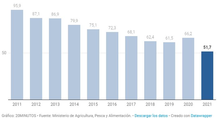 December er den måned, hvor der spises mest lammekød i Spanien, men salget har været faldende siden begyndelsen af århundredet. Inflationen har gjort lam til den fødevare, hvis forbrug er faldet mest i år, og til jul vil den have en rekordpris.