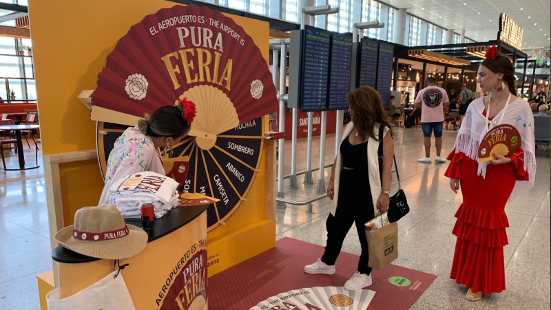 Ifølge lufthavnsmyndighedern er ‘Pura feria' en atmosfære- og underholdningskampagne, der er opstillet i det åbne område lige efter taxfree.
