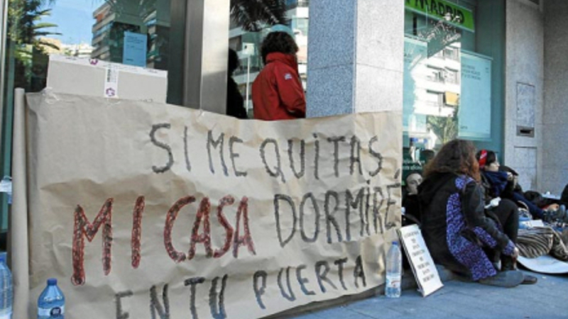 En gruppe demonstranter samledes i aftes i Madrid foran det konservative regeringspartis hovedkontor, hvor de krævede omfattende ændringer i loven. "Stop for ejendomsbranchens terrorisme” stod der på flere plakater.