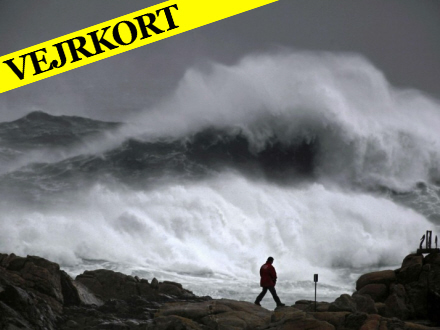 Her er der varsel om storm og helt op til ni meter høje bølger langs kysterne. Myndighederne advarer om, at tagsten kan blæse ned, grene kan knække af træerne og skilte kan vælte.
