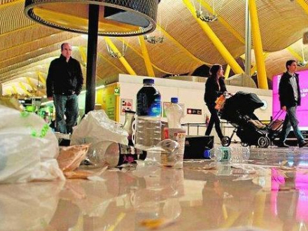 Ansatte indenfor restaurations- og renholdning har også nedlagt arbejdet, og det rammer blandt andet passagerer i lufthavnen i Barajas, hvor alle cafeteriaer og restauranter i går var lukket. I T4 hobede affaldet sig op på grund af en strejke blandt rengøringspersonalet (se foto til denne artikel).