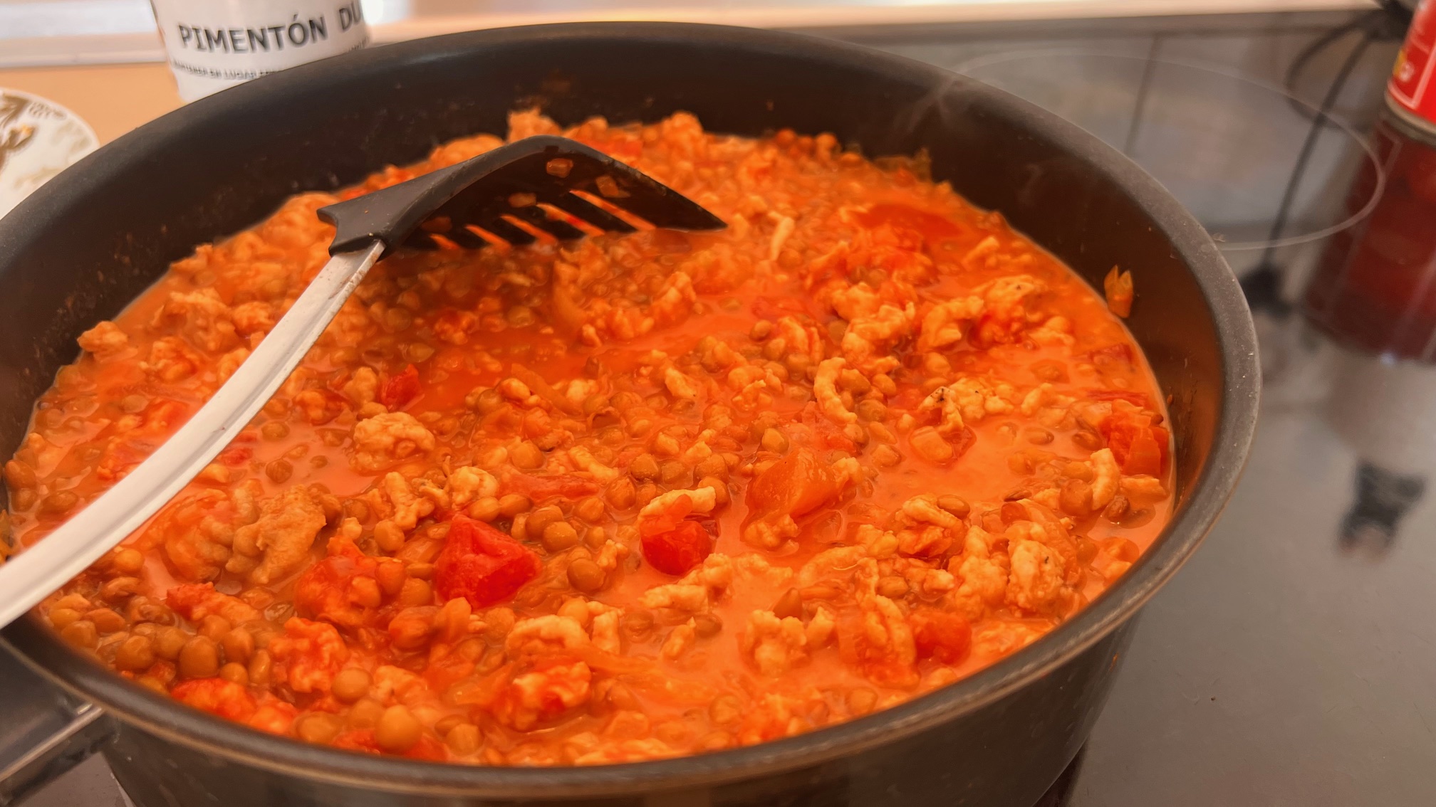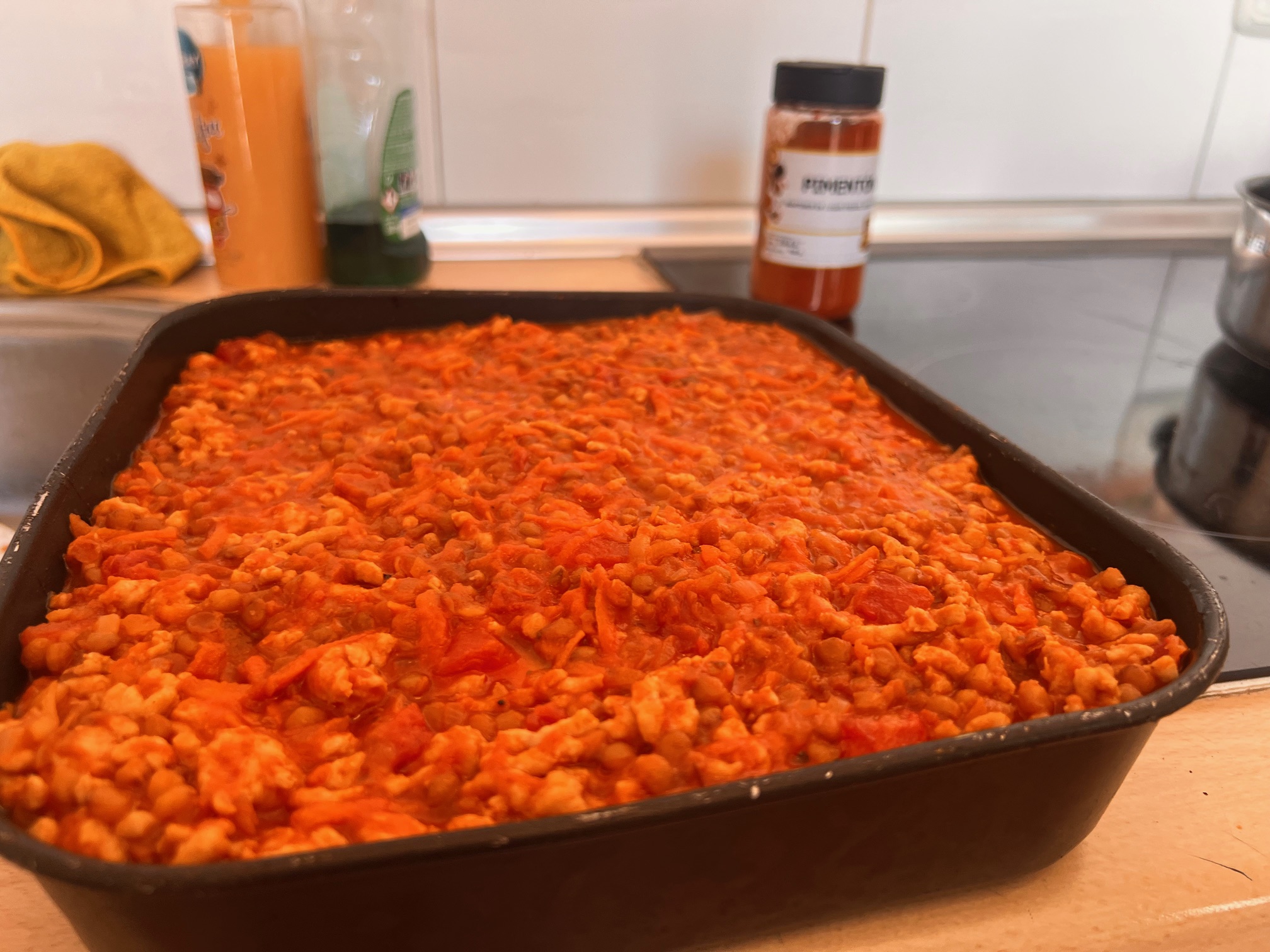 - Et glas røde linser - lentejas cocidas (kan også være tørrede, men så skal de i tidligere)