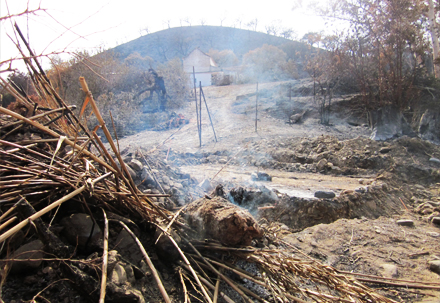 En uge efter brandens opståen er det hærgede område stadig præget af død og lemlæstelse.