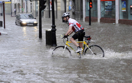 Uvejret ser ikke ud til at have påvirket denne cyklist