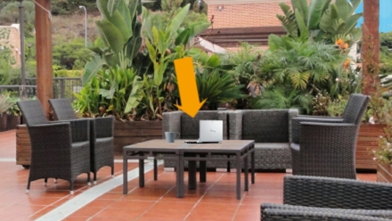 Jeg er taget op til Nordisk Senior Service's beskyttede boliger og sat mig på terrassen med min bærbare computer for at skrive min lørdagsklumme.