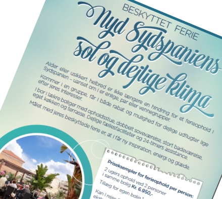 Nu er initiativet startet med at informere seniorer og ældre i Danmark om muligheden for at tage på en beskyttet ferie i Sydspanien.