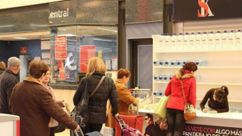 Supermarked i Valencia er blevet oversvømmet med desperate kunder, efter man er begyndt at uddele vand og brød hver tirsdag morgen klokken ni. Men lange køer giver også flere betalende køer i butikken.