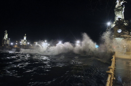 Store områder er i forhøjet beredskab på grund af ny koldfront med sne, frost og vindstød af orkan-styrke. Adskillige nysgerrige trodsede myndighedernes advarsler og blev fanget i gigantisk bølge.