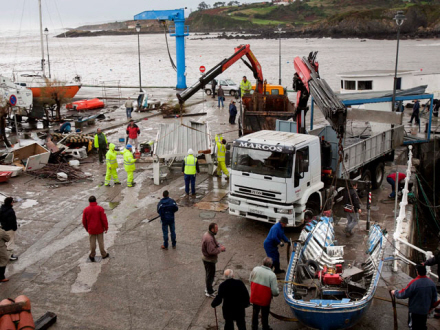 Mange steder er veje, mure og bygninger simpelthen forsvundet ud i det frådende hav. Der blev i går målt rekordbølger på 13 meter i Cantabrien, hvor der meldes om enorme ødelæggelser langs kysten.