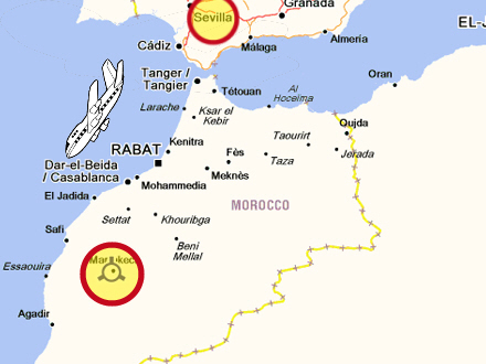 Der er små 700 km. i luftlinje fra Sevilla til Marakech