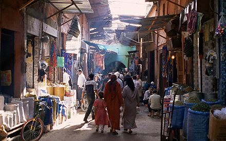Vi blev kørt til medinaen, som er det område af byen, hvor markedspladsen er, og hvor man bor meget tæt. Uden for medinaen ligger en ringvej, og på den anden side af denne ligger lidt mere luksuriøse hoteller og butikker.