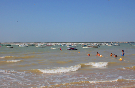 Nu var frokosten ovre. Turen gik videre mod kysten, hvor vi havde baren/chiringuitoen El Afrikano som mål og Atlanterhavet som grund til ikke at fortsætte direkte til Sevilla, hvor vi skulle overnatte. Vi fandt byen, fandt stranden, men fandt aldrig baren. Der var dog andre muligheder langs stranden, som er noget anderledes end de typiske omkring Fuengirola. Meget brede og ikke overbelastet af turister.