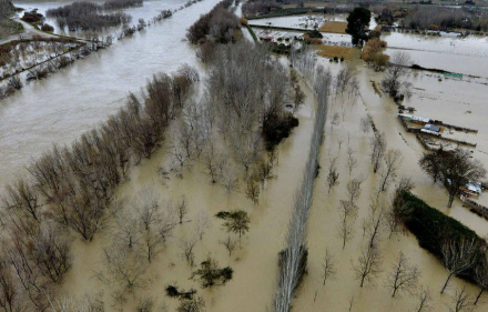 Floden Arga i Navarra var i går eftermiddag ved at gå over sine bredder, og vandgennemstrømningen i Ebro var på sin vej gennem Zaragoza steget til 1.600 kubikmeter i sekundet. Der indkaldes til et ekstraordinært forhøjet beredskab, hvis vandmængden stiger til 2.000.