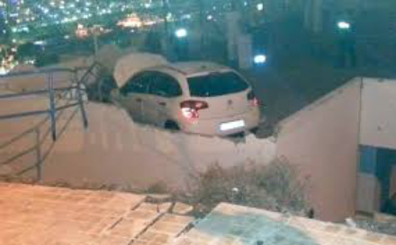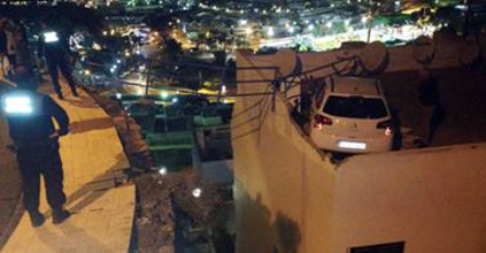 Tysken blev småkvæstet i ulykken, som skete lige efter 22 i Calle Roque del Este. I et sving fortsatte manden op over fortovet, plørede direkte gennem et metalrækværk, fløj de tre meter gennem luften mellem et hus og klippevæggen og landede herefter på det flade tag.