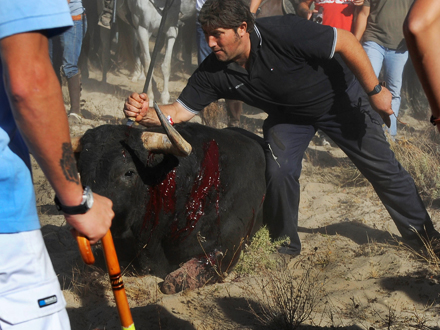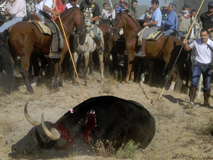 El Toro de la Vega afholdes i september i forbindelse med byfesten i Tordesillas i Valladolid og betår i, at hundredvis af mænd til hest og til fods jager en enkelt tyr for at give den ”en langsom død på grund af blodmangel fra de mange spyd og lanser, der stikkes ind i tyren under jagten”.
