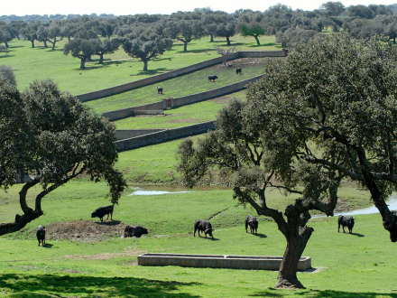 I Salamanca’s landdistrikter findes fornemme og berømte såkaldte 'ganaderias', som opdrætter tyre til landets bedste tyrefægtere. På de smukke gårde, langt ude på landet, går flokke af køer på enorme græsarealer, hvor de spiser de agern, som de kortstammede egetræer efterlader dem. Den selvsamme foder, som sortfodsgrisene spiser, inden de så at sige skæres i tynde skiver til den delikate jamon iberico.