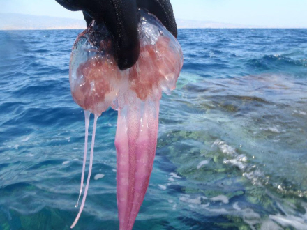 Forsker og medlem af Instituttet for Havforskning (CSIC) Veronica Fuentes, der deltager i undersøgelsen, siger, at der er set et stort antal af den selvlysende, giftige gople ”Pelagia noctiluca” i Valencia og langs de catalanske kyster, og det er "de største af slagsen, der hidtil er set".
