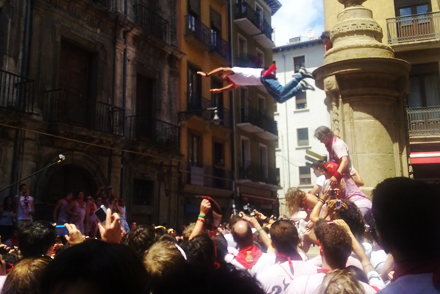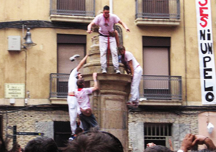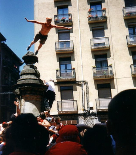 Den nye sport, som kaldes for ”fuenting” består i at deltagerne kravler op på den berømte Navarrería-fontæne midt i Pamplonas gamle bydel og kaster sig ud fra seks meters højde for at blive grebet af mængden.