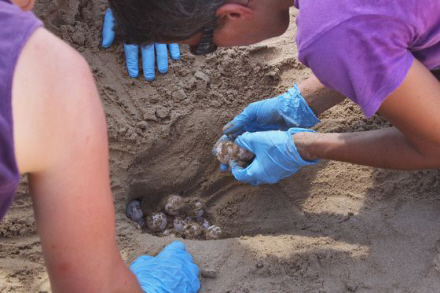 - Det er meget vigtigt, at æggene bliver lagt i samme position, som da de blev lagt af moderen. Hvis ikke, er der stor risiko for, at de ikke udklækkes. Så flytningen var meget vanskelig, siger havbiolog Richard Gutiérrez