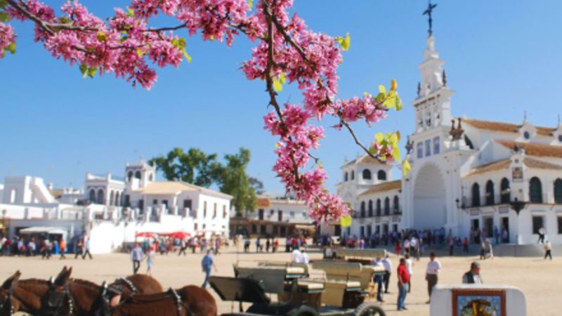 Flere turistbusser holdt på rad og række. Passagerne var enten gået på opdagelse i byen eller søgte hen til landsbyens midtpunkt, sognekirken 'El Rocio' med den berømte jomfru-figur.