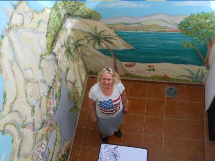 - Mit speciale er vægmalerier, jeg har mange års erfaring, hvor jeg har malet på Rigshospitalet, restauranter, børnehaver samt i private hjem, fortæller kunstneren, da Spanien i Dag ringer hende op og forstyrrer hende midt i maleriet.