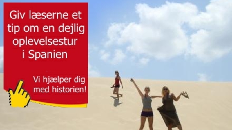 Der findes ingen som Spanien i Dags læsere, når det kommer til kendskab til Spaniens skønneste kroge og hemmeligheder. Læserne – og vi på redaktionen – vil sætte stor pris på, hvis du giver et tip om en god oplevelsestur.