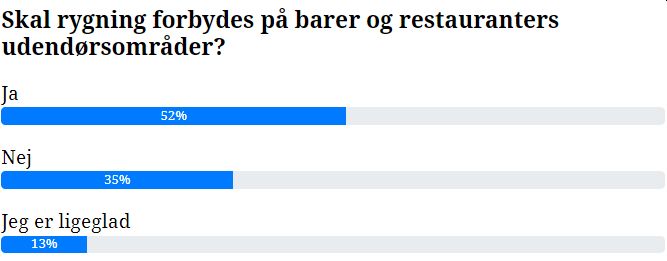 I artiklen foretog vi en meningsmåling om vores læseres holdning til rygeforbuddet, og resultatet var følgende: