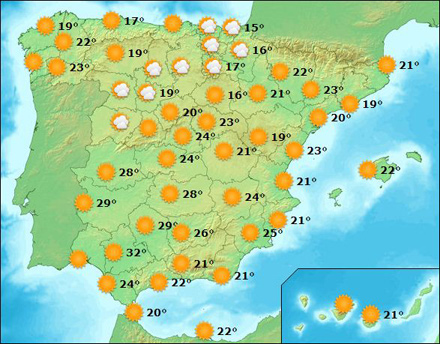 Men fra onsdag eller torsdag bliver det igen køligere og mere overskyet med mulighed for byger i det mest af landet, især i den nordlige og centrale del af landet, oplyser meteorologisk institut, AEMET.